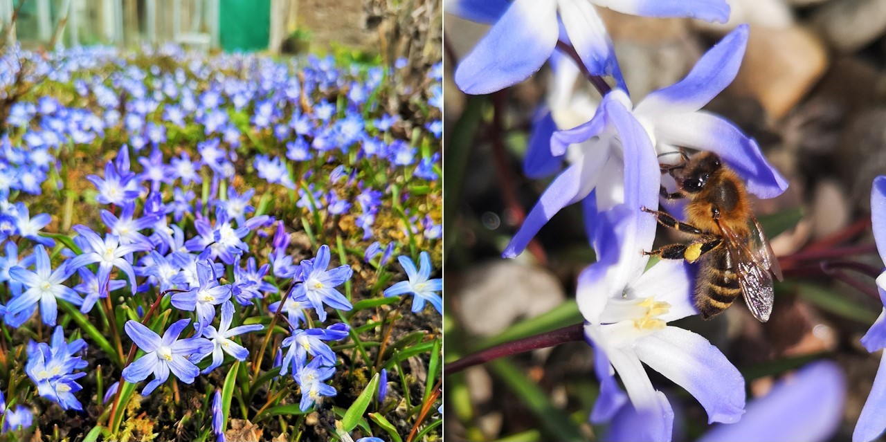 The beds, paths and borders are once again covered in a blue carpet of tiny Chionodoxa. I did a bit of reading on the species and their common name is Glory of the Snow. We had a lot of the white stuff lying in February so I am wondering whether this has had something to do with the fact that there are so many this year.
